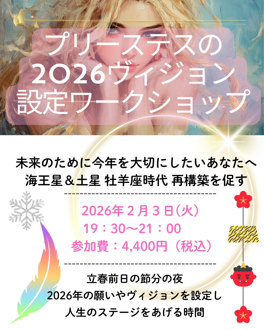 このワークショップでは、理想の未来を磁石のように引き寄せるための「内なる器」を整えます。一緒に、2026年をデザインする準備を始めましょう。